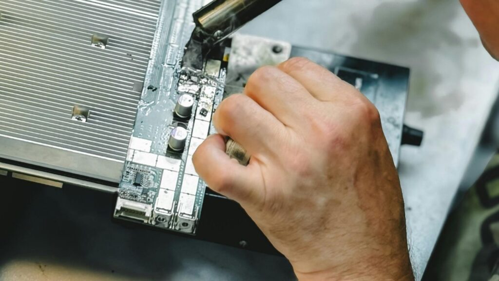 Kart üzerindeki tüm bileşenler — entegre devreler, MOSFET’ler, sürücüler, direnç ve kapasitörler — gelişmiş test cihazlarıyla incelenir. Arızalı nokta belirlenir. - Komponent Değişimi: